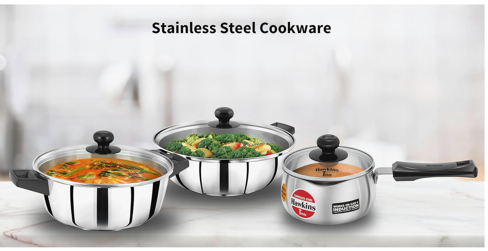 หม้อแรงดันแต่ละใบ ที่ทำโดย Hawkins จะมีฝาปิด จากด้านใน เป็นนวัตกรรม ที่ผ่านการคิดค้นต้นฉบับหนึงเดียว การออกแบบนี้ปลอดภัยกว่าหม้อแรงดันทั่วไป ในการเปิดหม้อหุง Hawkins ใด ๆ คุณต้องปิดฝาลงในหม้อเล็กน้อยก่อน และไม่สามารถเปิดได้ จนกว่าแรงดันไอน้ำภายในหม้อหุง จะตกลงไปในระดับที่ปลอดภัย ดังนั้นหม้อแรงดันของ Hawkins จึงถูกล็อคด้วยแรงดันเพื่อความปลอดภัย - >> เหมือนประตูโบอิ้ง!<<- ฮอว์กินส์นำเสนอหม้อแรงดัน 73 รุ่น ที่แตกต่างกันใน 10 ประเภท คลิกที่ ประเภทที่แสดงด้านล่าง เพื่อเรียนรู้เพิ่มเติม เกี่ยวกับคุณสมบัติประโยชน์ และรุ่นต่างๆของประเภทนั้น ๆ |